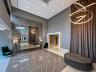 - Pé direito duplo na sala de estar com esquadria de vidro até o nível do piso;